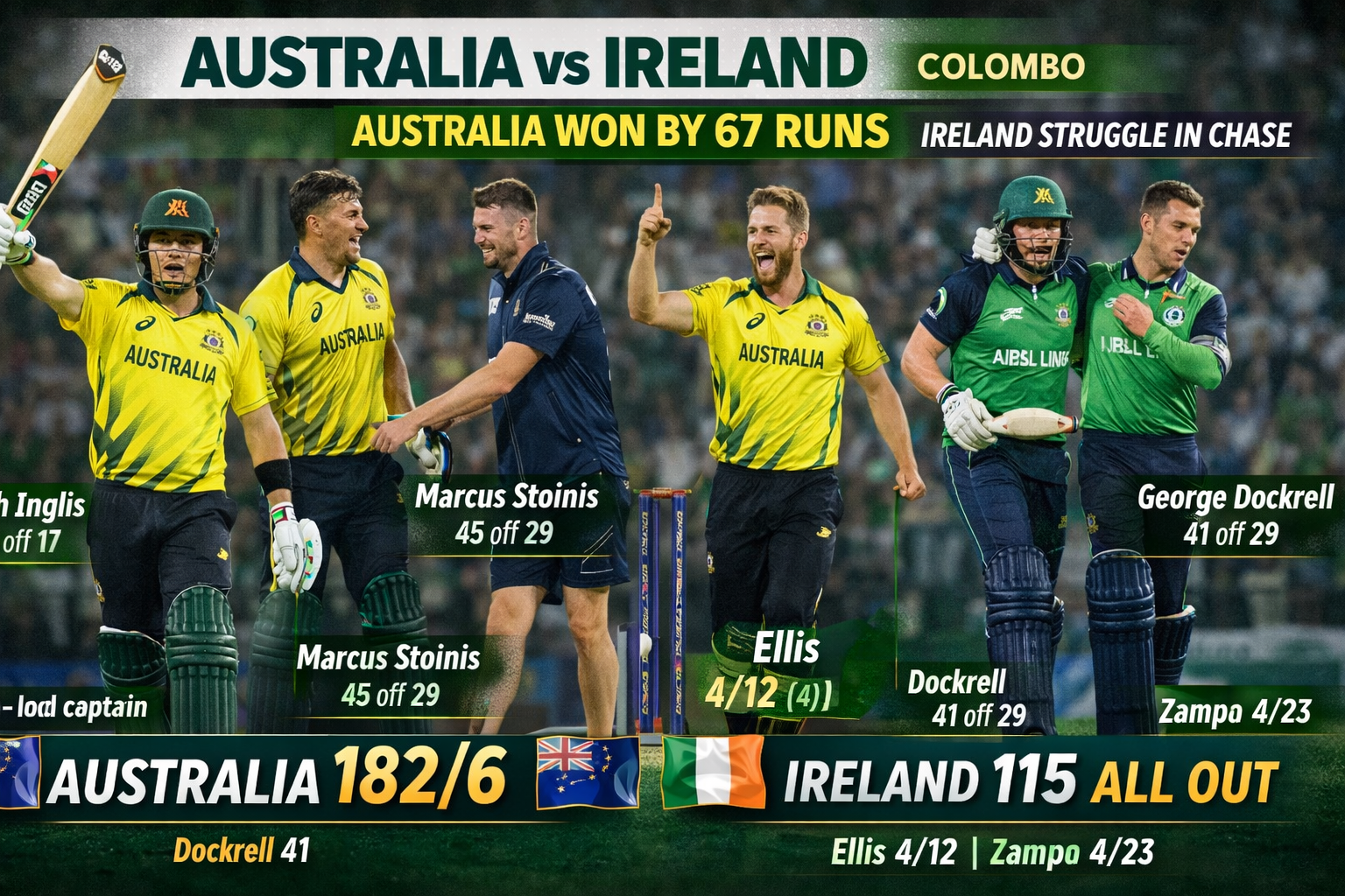 Ireland was eventually all out for 115 runs in 16.5 overs. Australia secured a massive 67-run victory. This win was very important for Australia because it gave them a big boost to their Net Run Rate. It also showed that their squad has great depth, as even the younger players performed well under pressure. For Ireland, it was a tough day at the office, but they will hope for a better performance in their next game.