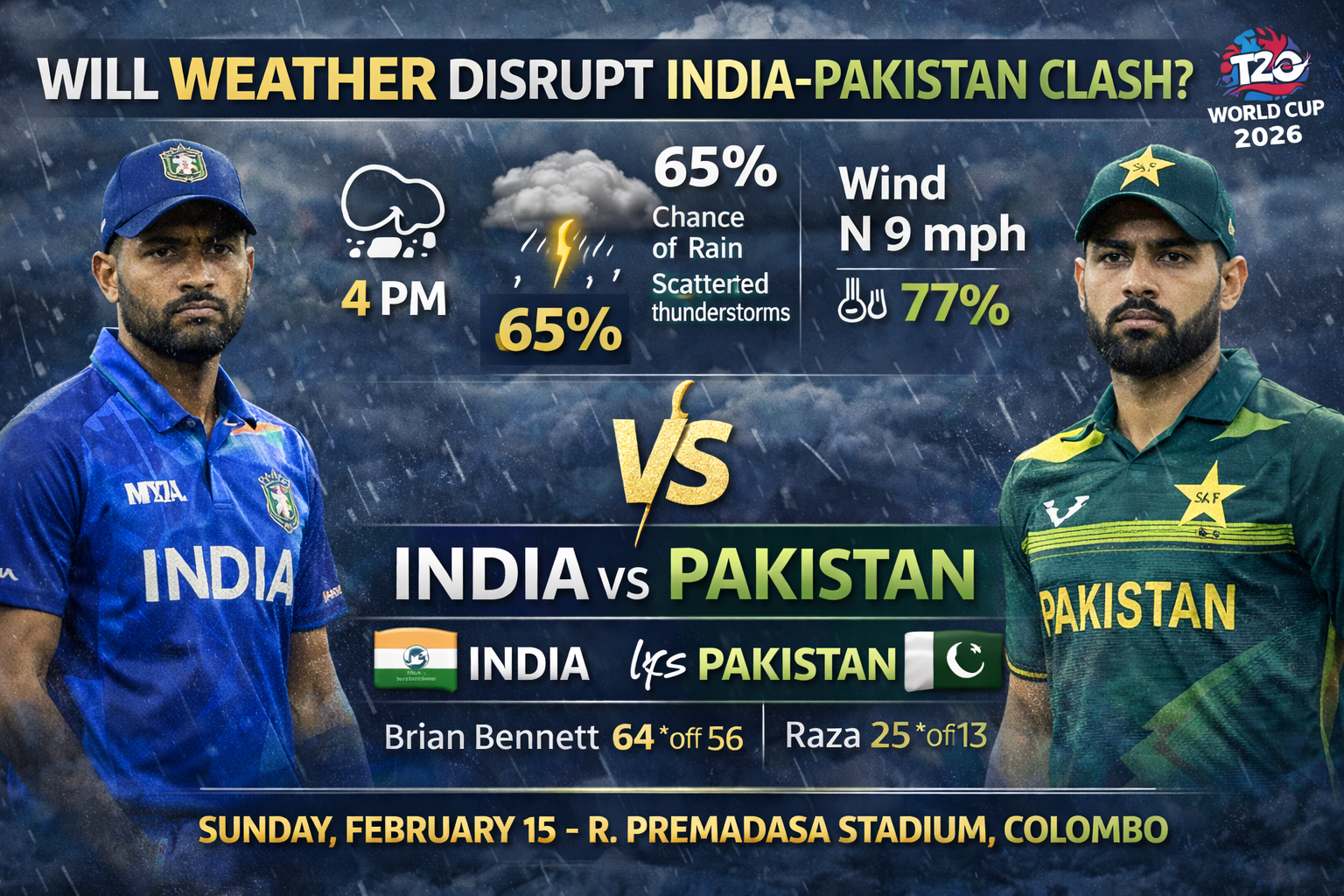 As the world prepares for the biggest rivalry in cricket, a familiar foe is threatening to steal the spotlight: the weather. The high-stakes ICC Men’s T20 World Cup 2026 match between India and Pakistan is scheduled for Sunday, February 15, at the R. Premadasa Stadium in Colombo. However, the latest forecasts suggest that fans may need umbrellas as much as their team flags.