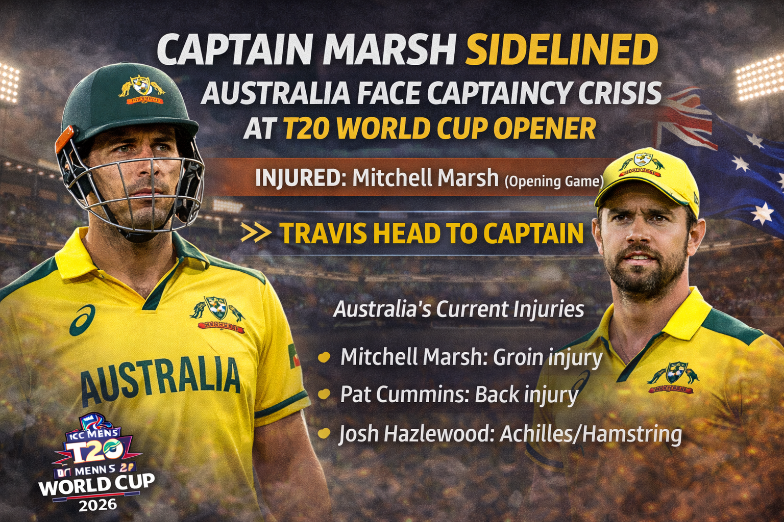 COLOMBO – Australia’s T20 World Cup plans just took a massive hit. Captain Mitchell Marsh will miss the team’s first game against Ireland. The news came from Cricket Australia just hours before the match began.