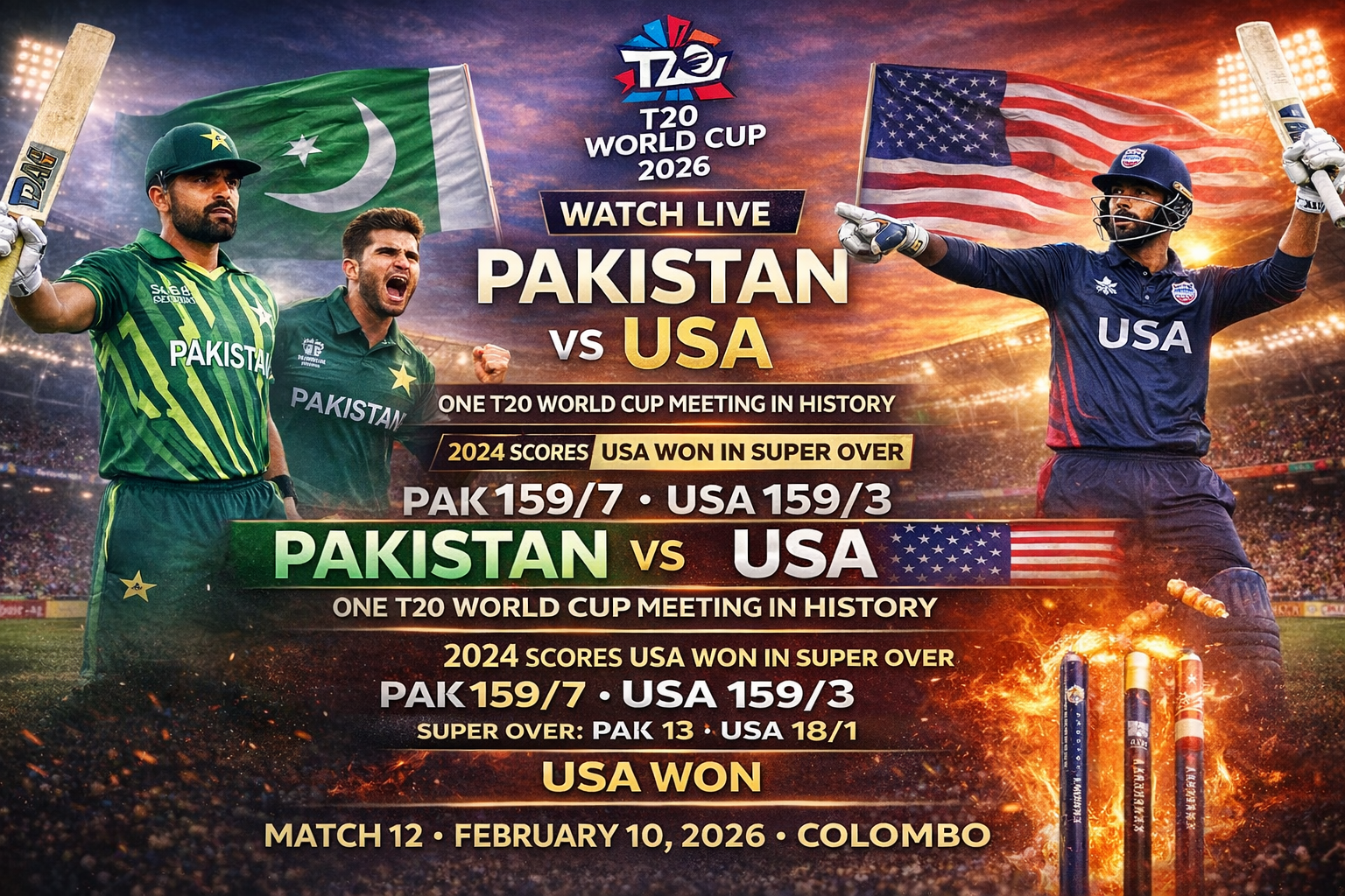 Pakistan will play the United States of America on February 10, 2026, in the 12th match of the ICC Men's T20 World Cup 2026. The Group A match will take place in Colombo and is very important for both teams.