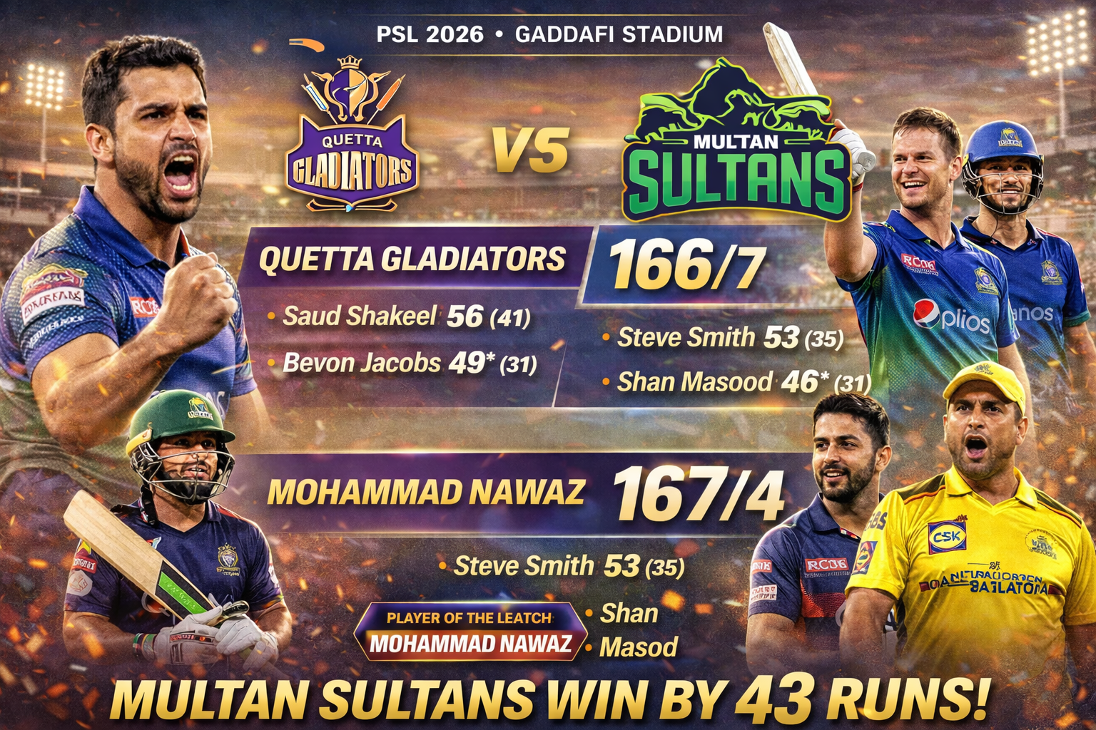 The hero of the match was undoubtedly Mohammad Nawaz, who won the Player of the Match award. His three wickets in the first innings were the main reason Quetta could not set a bigger target. The fans were very impressed by his skill and how he handled the pressure of the big game. It was a complete performance from a player who has been a star in the league for many years.
